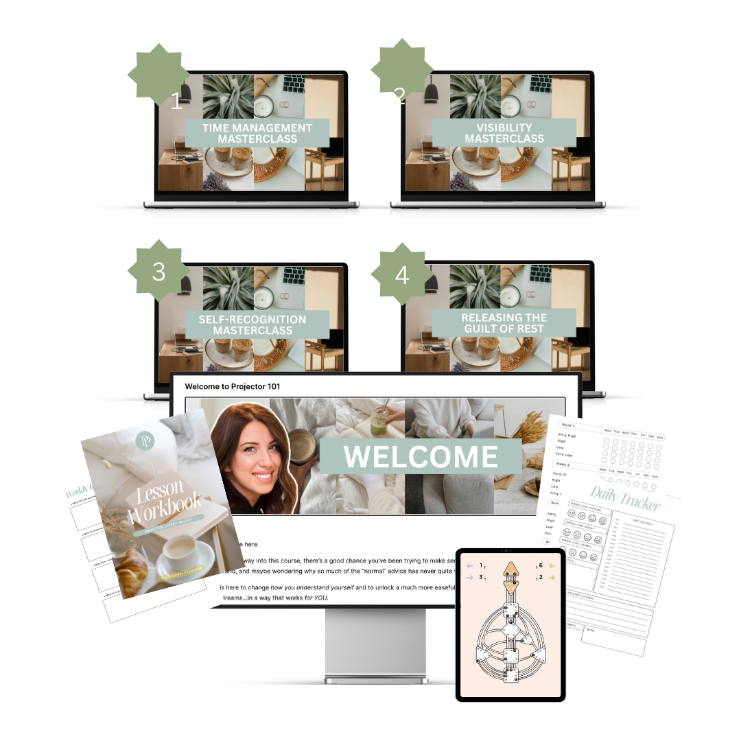You’ll get Projector 101 course to understand your energy, role, and boundaries, alongside four focused masterclasses to help you feel recognised, rested, and confident doing business and life your way.